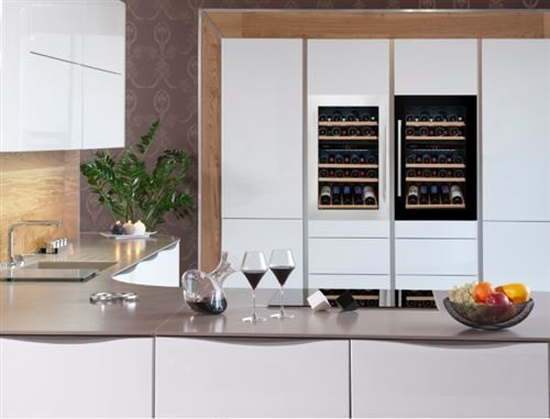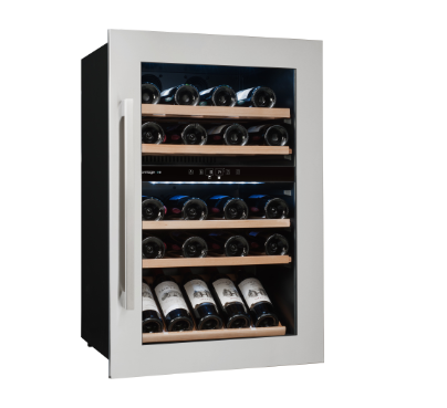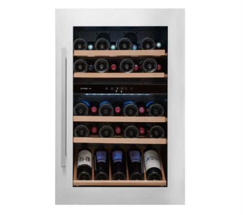 Winiarka AVI47XDZA do zabudowy w słupku. Dwustrefowa o pojemności do 52 butelek wina.