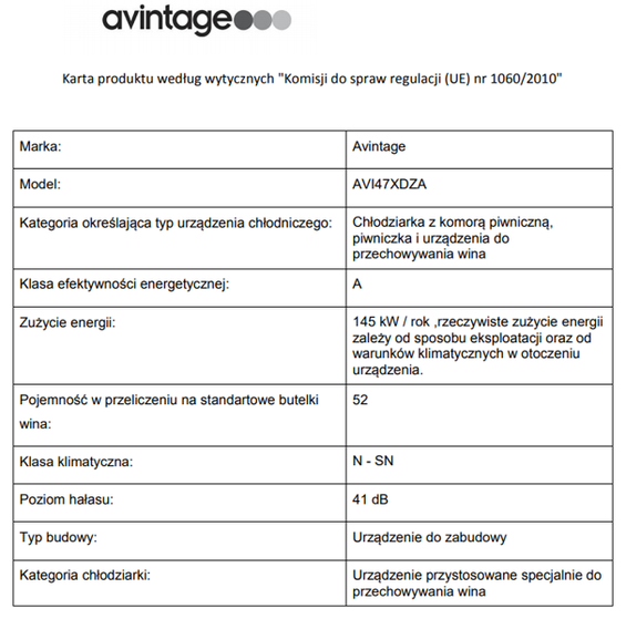 Winiarka Avintage do zabudowy AVI47XDZA