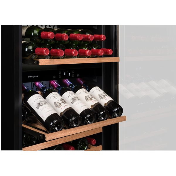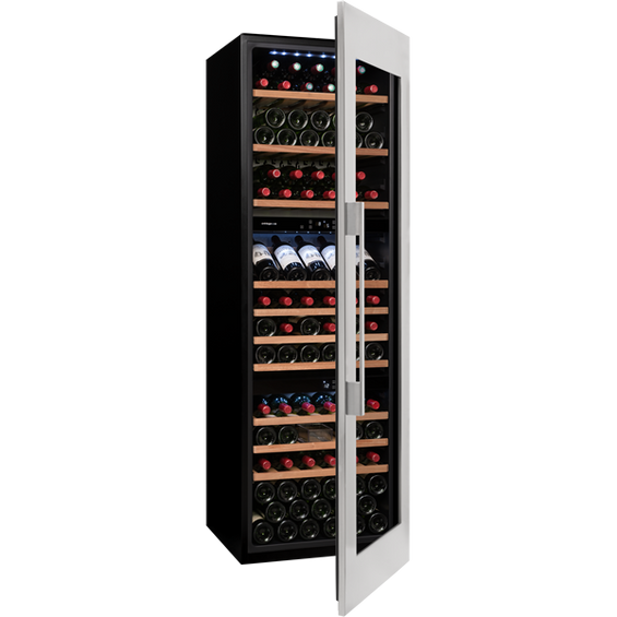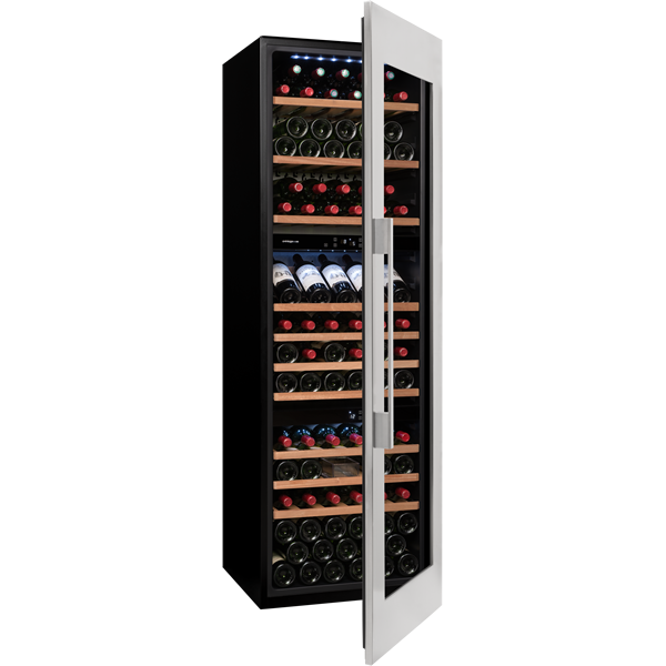 AVI97AX3ZI trzystrefowa winiarka do zabudowy w słupku o pojemności 97 butelek wina.