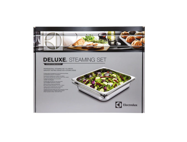 Dwuczęściowy zestaw do gotowania na parze Deluxe Steam Set zaprojektowaliśmy tak, by pomieścił nawet duże składniki, umożliwiając zdrowsze, pyszne gotowanie. Wykonany ze stali nierdzewnej dla łatwego utrzymania w czystości.
