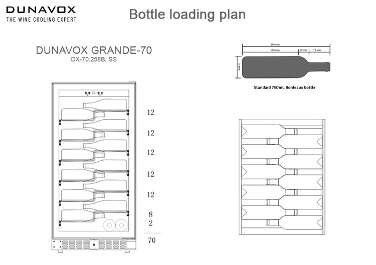 - Pojemność - ilość butelek (butelka Bordeaux 0,75 litra) 70 butelek Bordeaux