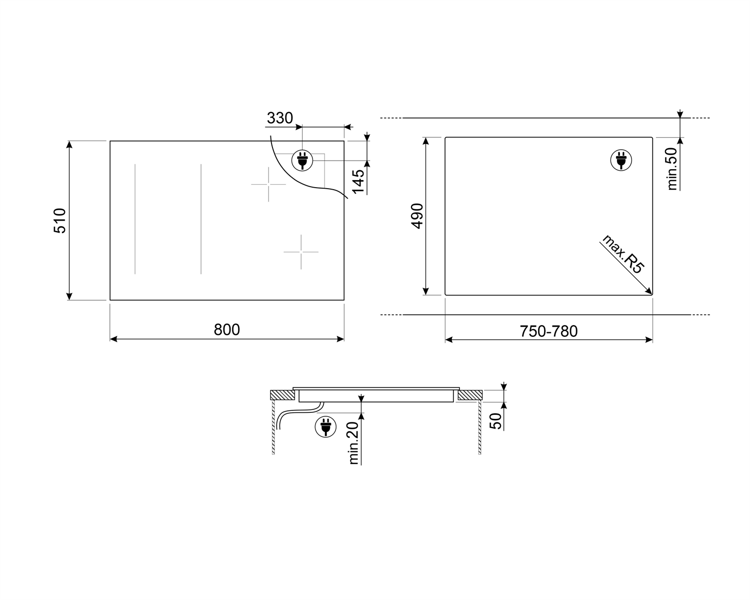 - Wymiary lewej strefy Multizone 38.5x23.0