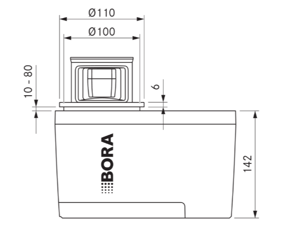 Dzięki innowacyjnej i unikatowej koncepcji montażowej system BORA QVac nie zajmuje cennego miejsca na kuchennym blacie. Znajduje się on - podobnie jak ukryta konstrukcja wyciągu oparów - pod powierzchnią blatu. System pakowania próżniowego może być montowany zarówno w jednym poziomie z powierzchnią roboczą, jak i ponad nią.