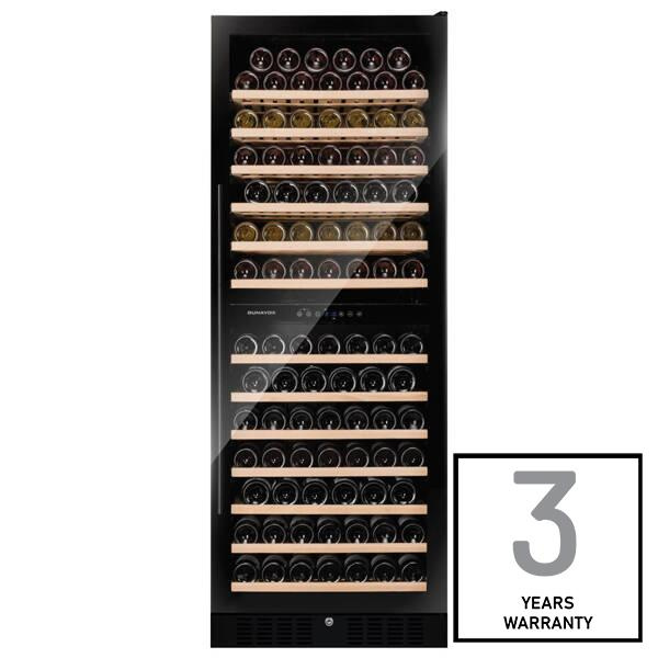 Dwustrefowy, wolnostojący model na 108 butelek z ekskluzywnej linii. Elegancki wygląd zewnętrzny - DUNAVOX Grande-108 idealnie nadaje się do nowoczesnych kuchni, barów i hoteli. Butelki są eksponowane na półkach z litego drewna bukowego i otoczone białym, bursztynowym i niebieskim oświetleniem LED wewnątrz. Górna strefa musi być zimniejsza niż dolna, zalecana różnica temperatur wynosi 8°C. Należy pamiętać, że ten model nadaje się do użytku wolnostojącego lub do zabudowy.