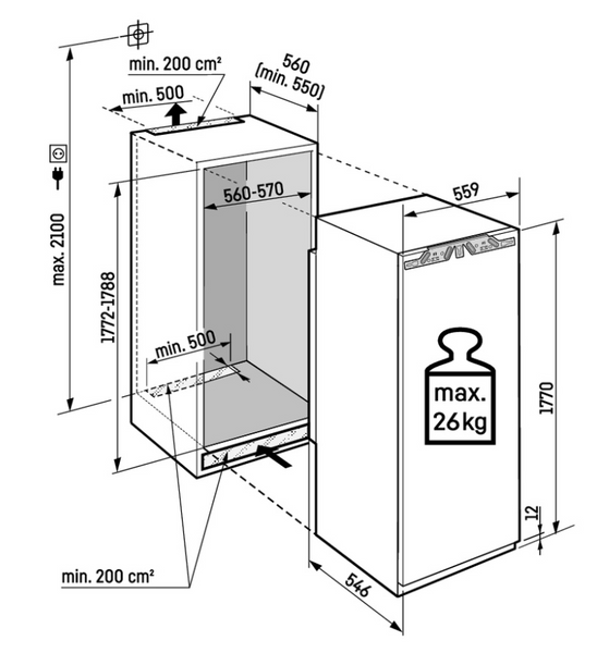| Wymiary wnęki wysokość/szerokość/głębokość | 177,2 - 178,8 / 56 - 57 / 55,0 cm |