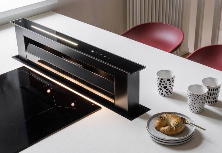 To jedyny taki model na rynku, który łączy wysoką wydajność z maksymalną wysokością, dostosowaną nawet do największych garnków. Z łatwością dostosujesz wysokość okapu do typu dań, które właśnie przygotowujesz: niżej, jeśli smażysz na patelni i wyżej, jeśli korzystasz z garnków. W ten sposób zapachy i para zostają błyskawicznie zneutralizowane.