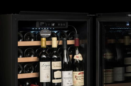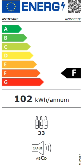 Winiarka AVI63CSZF do zabudowy we wnęce meblowej. Jednostrefowa o pojemności do 33 butelek wina.