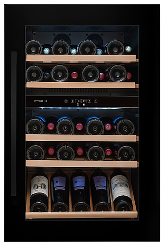 AVI88G2 winiarka do zabudowy w słupku. Dwustrefowa o pojemności do 51 butelek wina.