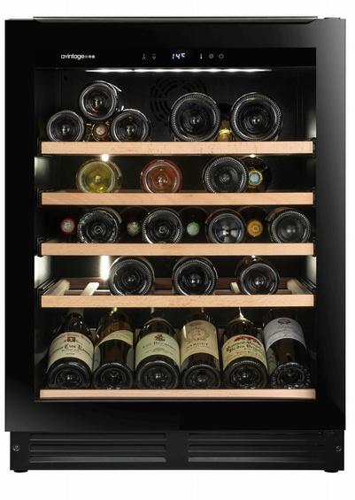 AVU50S82 winiarka do zabudowy pod blatem. Jednostrefowa o pojemności do 44 butelek wina. Płaski uchwyt umieszczony jest na górnej ramie drzwi.