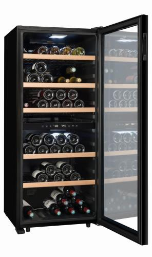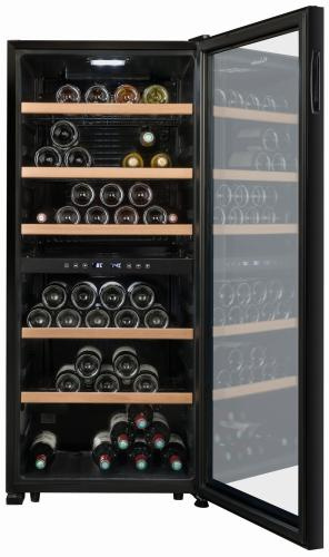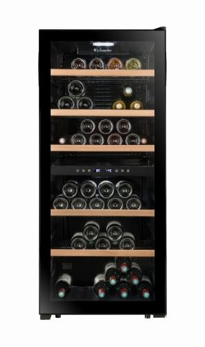 LS102DZBLACK wolnostojąca dwustrefowa winiarka do serwowania wina. Pojemność do 102 butelek wina.