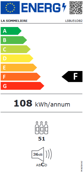 Winiarka LSBU51DB2 do zabudowy. Dwustrefowa, o pojemności do 51 butelek.