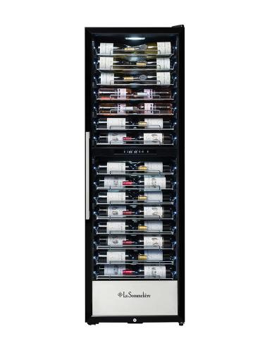 NOWOŚĆ- przeznaczona dla profesjonalistów i restauracji. W chłodziarce butelki wina ułożone są blisko szyby drzwi z widocznymi etykietami, co umożliwia pełną prezentację karty win dla klientów. Oświetlenie każdej półki białym światłem LED, lepiej eksponuje przechowywane wina. 15 wysuwanych półek umożliwia dobry dostęp do każdej butelki wina.