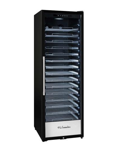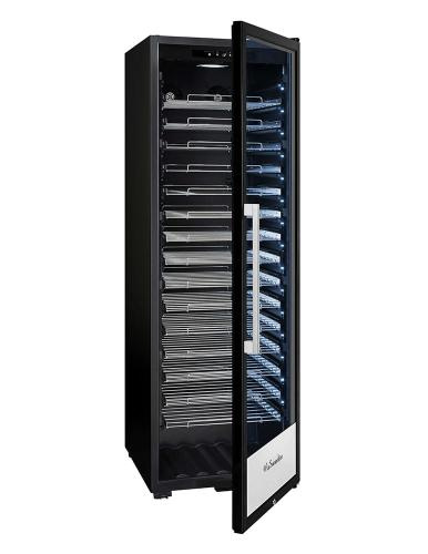 NOWOŚĆ- przeznaczona dla profesjonalistów i restauracji. W chłodziarce butelki wina ułożone są blisko szyby drzwi z widocznymi etykietami, co umożliwia pełną prezentację karty win dla klientów. Oświetlenie każdej półki białym światłem LED, lepiej eksponuje przechowywane wina. 15 wysuwanych półek umożliwia dobry dostęp do każdej butelki wina.