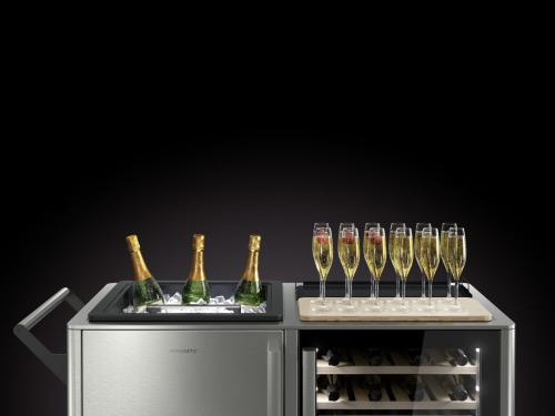 Dometic MoBar 550 - mobilny bar zewnętrzny ze stali nierdzewnej z dwustrefową chłodziarką do wina.