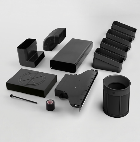 Z zastosowaniem tego zestawu urządzenie może być użytkowane jako pochłaniacz. Przefiltrowane powietrze jest doprowadzane pod szafkę, a następnie do cokołu, skąd wydostaje się na zewnątrz dzięki specjalnemu elementowi w kształcie lejka. Element ten wykończony jest chromowanym profilem.