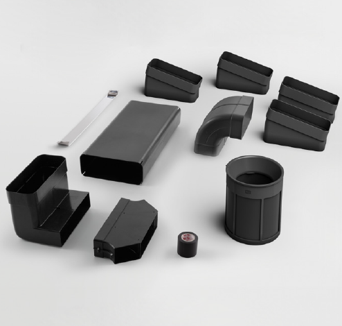 Z zastosowaniem tego zestawu urządzenie może być użytkowane jako pochłaniacz. Przefiltrowane powietrze jest doprowadzane pod szafkę. Niezbędny otwór wentylacyjny w cokole może być wykończony za pomocą będącego w komplecie profilu chromowanego.