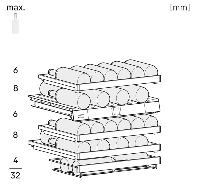 | Maksymalna liczba butelek typu Bordeaux o poj. 0,75 l | 32 |