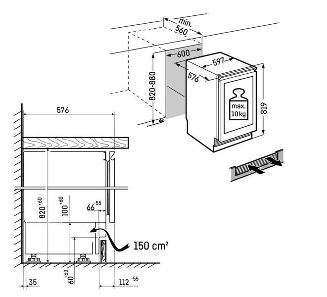 | Wymiary wnęki wysokość/szerokość/głębokość | 82 - 88 / 60 / 58,0 cm |