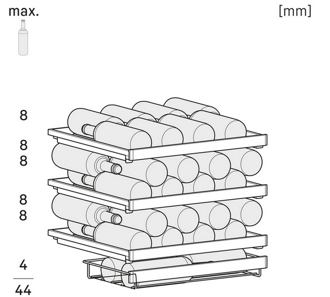 | Maksymalna liczba butelek typu Bordeaux o poj. 0,75 l ** | 44 |