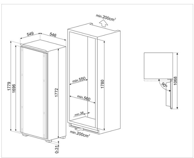 - Szerokość produktu z maksymalnie otwartymi drzwiami: 548 mm