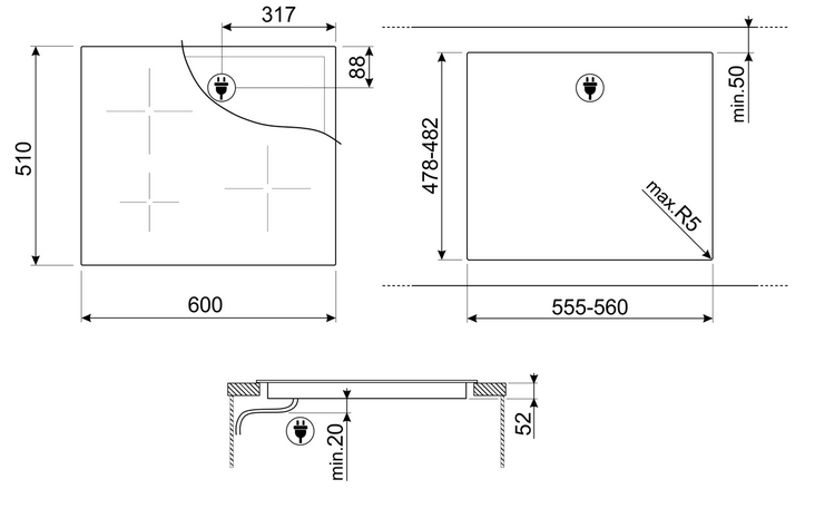 | Płyta do zabudowy na równi z blatem: | Tak |
