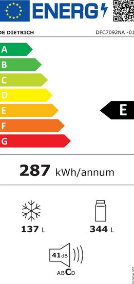 - Objętość netto lodówki / zamrażarki: 344 l / 137 l