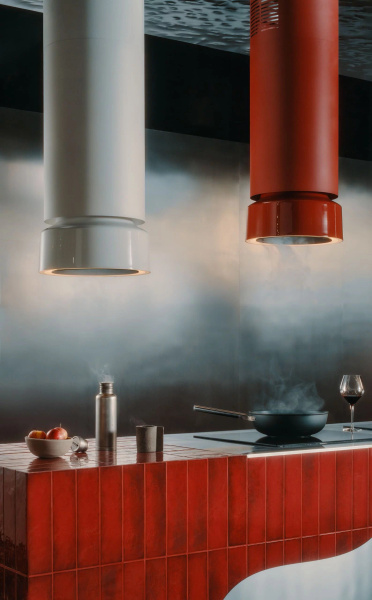 Inspiracją przy tworzeniu kolekcji FLUO W była dynamika ruchu zasysanego powietrza. Stworzyliśmy okap składającą się z płaszczyzn, które na pierwszy rzut oka wydają się kontrastować ze sobą, a jednak połączone tworzą harmonijną całość. To zestawienie elementów – prostoty i organicznych kształtów – nadaje produktom unikalny charakter, który jednocześnie oddaje ich funkcjonalność.
