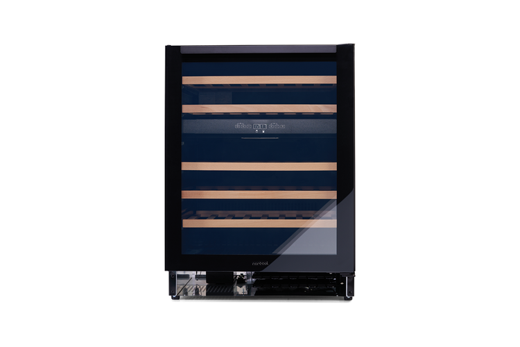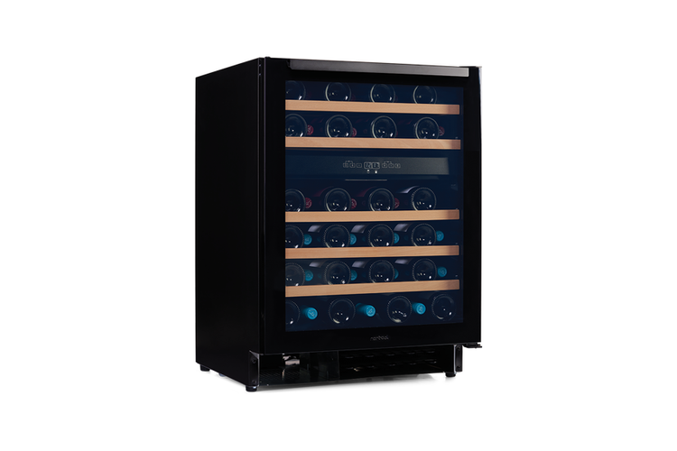 Dwustrefowa, jednodrzwiowa chłodziarka do wina Norcool do zabudowy pod blatem kuchennym.