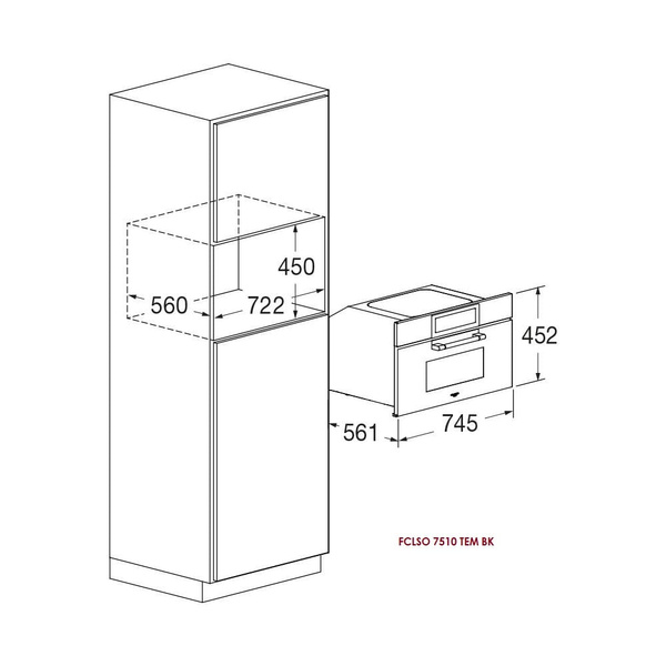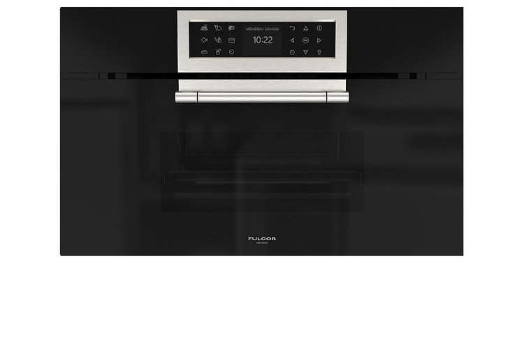 Piekarnik do zabudowy z funkcją gotowania na parze Fulgor Milano serii Cluster, 75x45 cm, czarna lawa.