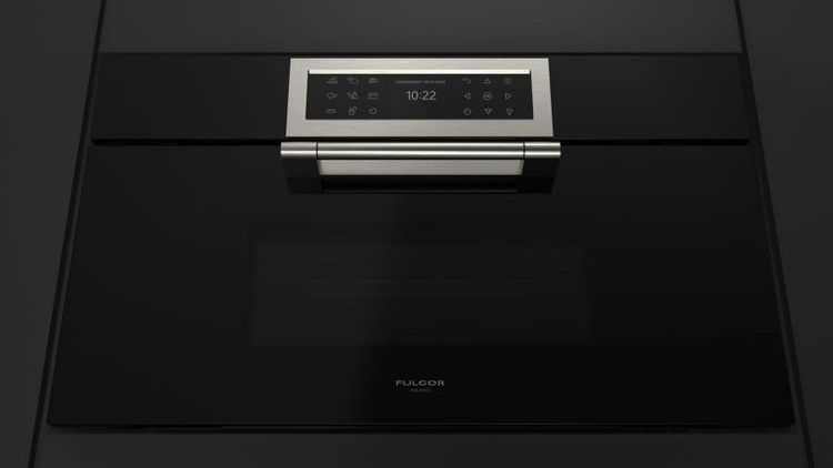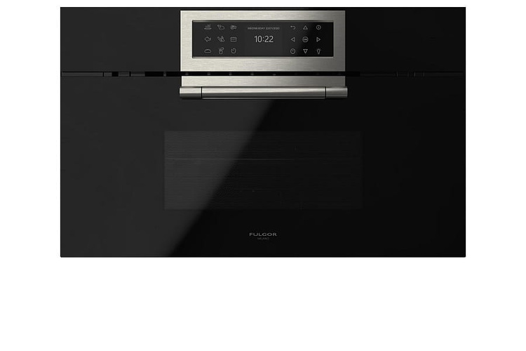FCLMO 7510 TEM BK to nowoczesny piekarnik do zabudowy z mikrofalą o szerokości 75 cm i wysokości 45 cm. Na panelu sterowania dostępne są różne funkcje, w tym predefiniowane programy gotowania i możliwość modyfikacji przepisów. To wielofunkcyjne urządzenie Fulgor Milano jest doskonałym rozwiązaniem do szybkiego podgrzewania i gotowania potraw. Łączy zalety kuchenki mikrofalowej i tradycyjnego piekarnika z wentylatorem: kompletny i wydajny sprzęt w mniejszej przestrzeni. Funkcja mikrofali i wentylatora umożliwia szybkie przygotowanie potraw, które są złociste na powierzchni i dobrze wypieczone w środku. Dzięki funkcji AirFry pyszne, chrupiące frytki, nuggets'y, warzywa, ryby i wiele innych potraw, przygotujesz bez przesadnej ilości tłuszczu - zdrowo szybko i wygodnie! Solidność wykonania i design pozwala na pełną integrację z innymi urządzeniami linii wzorniczej Fulgor Milano Cluster Concept w kolorze czarnej lawy - Obsidian Black Glass. Standardowe akcesoria obejmują szklany talerz obrotowy, okrągły grill i tacę ze stali nierdzewnej oraz płaski grill.