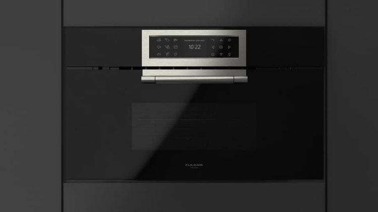 Piekarnik do zabudowy z mikrofalą Fulgor Mialno serii Cluster, 75x45 cm, czarna lawa.
