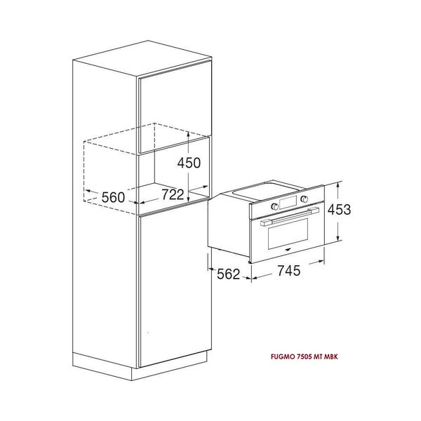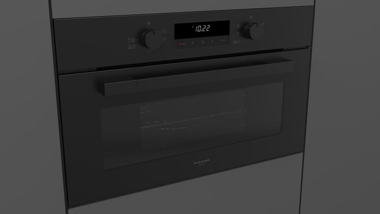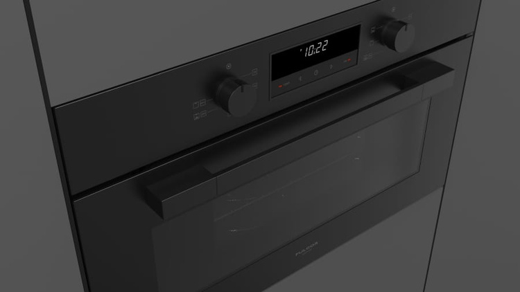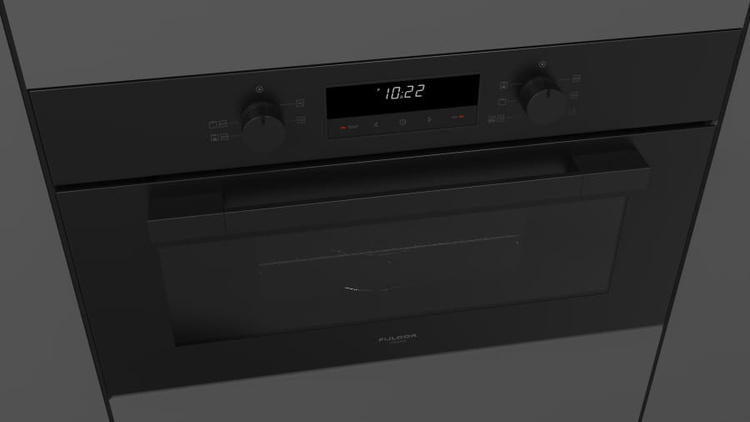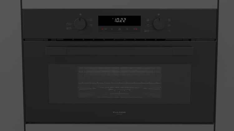 Piekarnik do zabudowy z mikrofalą Fulgor Mialno serii Cluster, 75x45 cm, czarna lawa.
