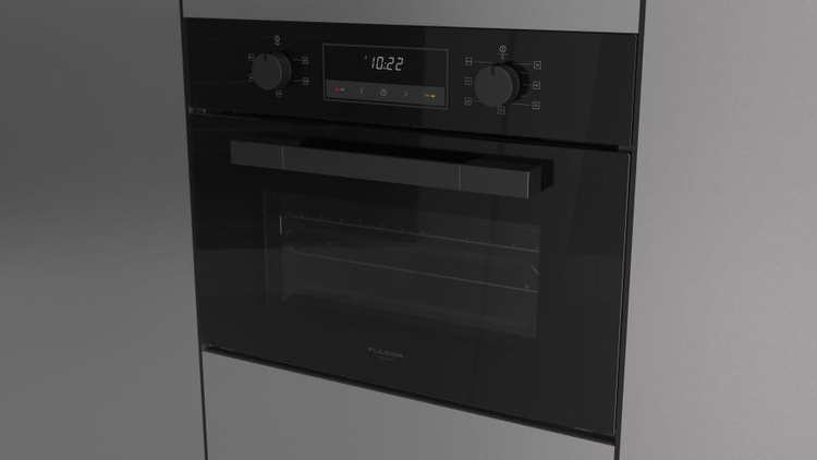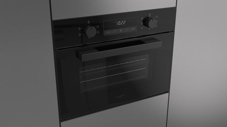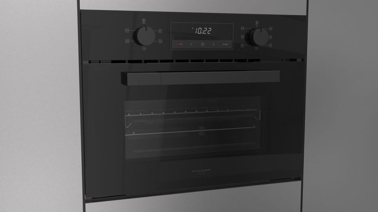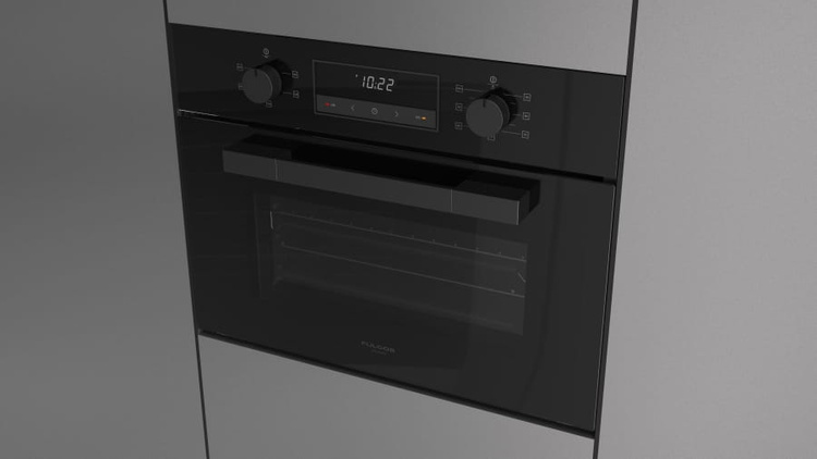 Wielofunkcyjny piekarnik elektryczny Urbantech Fulgor Milano FUTO 7509 MT GBK o szerokości 75 cm z rożnem obrotowym, czarne szkło