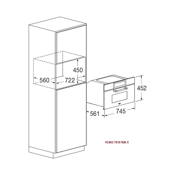 Piekarnik do zabudowy z mikrofalą Fulgor Milano serii Plano, 75x45 cm, inox.