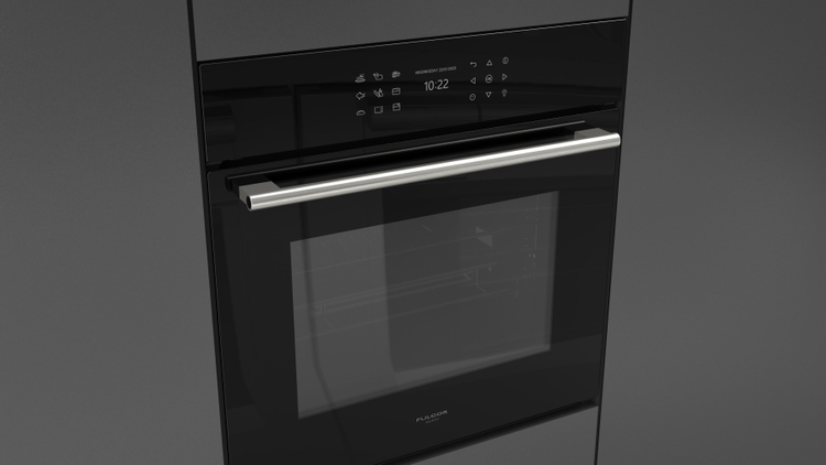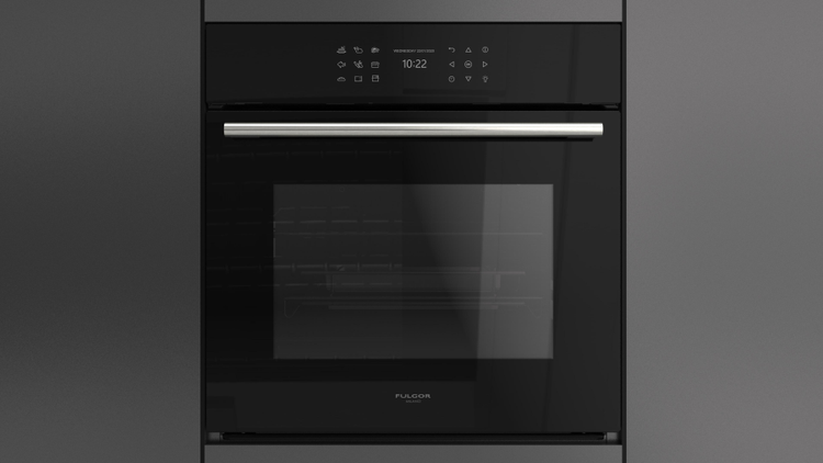 Wielofunkcyjny piekarnik do zabudowy z funkcją gotowania na parze i frontem z czarnego szkła należący do linii wzorniczej Plano. Wymiary, proporcje, wykończenie oraz charakterystyczny, elegancki uchwyt inox pozwalają na zestawienie go z innymi urządzeniami Fulgor Milano z tej samej linii Plano.
