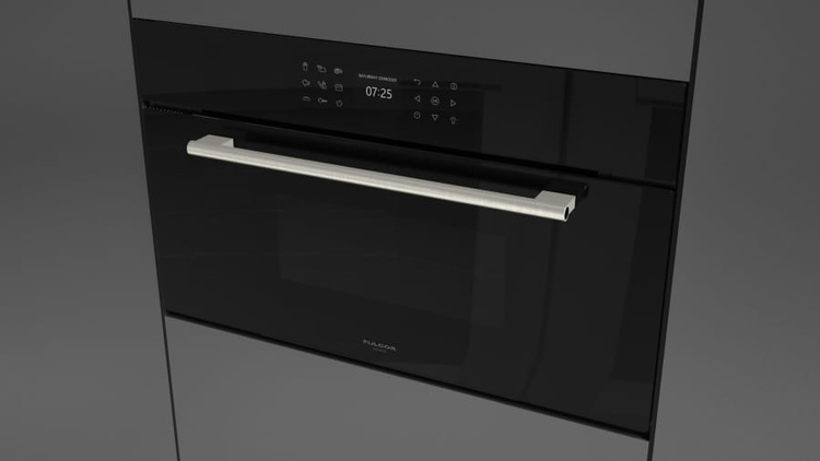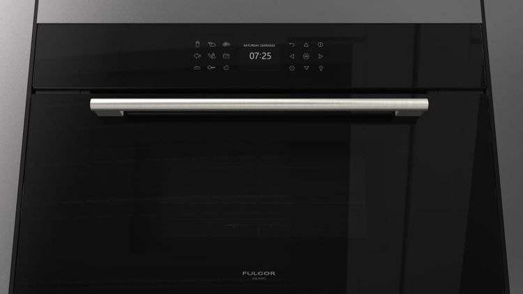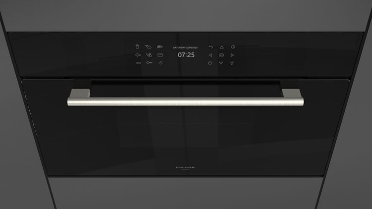 Piekarnik do zabudowy z mikrofalą Fulgor Milano serii Plano, 75x45 cm, czarne szkło