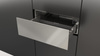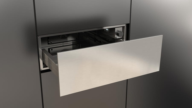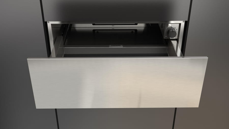 Szuflada grzewcza ze stali nierdzewnej to połączenie nowoczesnej elegancji i niezrównanej funkcjonalności w dopracowanej formie. Jej front o wysokości 27 cm oraz przestronna komora o pojemności 60 litrów zapewniają komfort i wygodę użytkowania. Dzięki systemowi otwierania push/pull to open i teleskopowym prowadnicom obsługa urządzenia jest niezwykle intuicyjna.