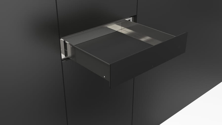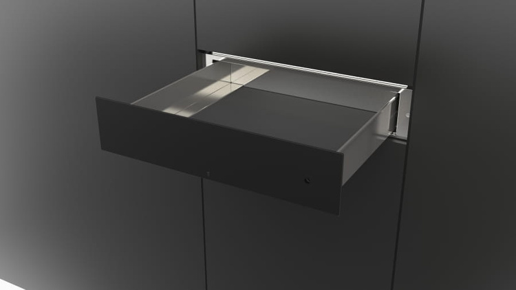 Szuflada została zaprojektowana i wykonana we Włoszech. Wzorniczo pasuje do pozostałych urządzeń linii Fulgor Milano Urbantech w kolorze czarnym, matowym.
