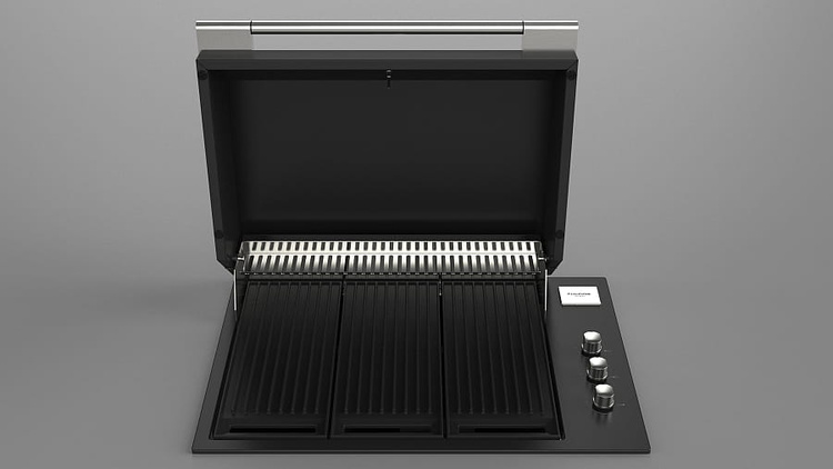 W galerii zdjęć pokazany jest grill z zamontowanymi dwiema, różnymi pokrywami: FOBQLL 800 MBK (niska - do zakrycia po zakończeniu) i FOBQHL 800 MBK (wysoka - do pieczenia) które są sprzedawane oddzielnie.