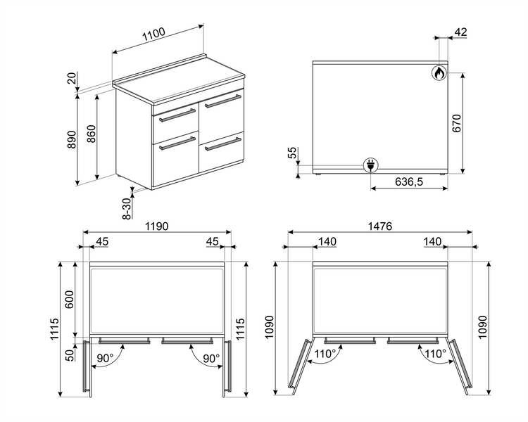 Kuchnia z płytą gazową Smeg CX113GMBL
